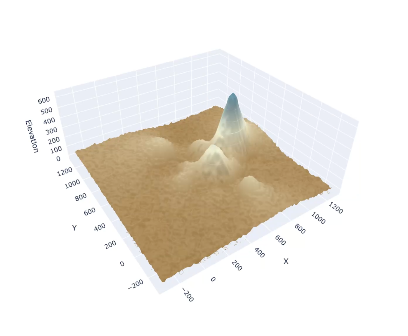 This is a 'mountain range' created from embedding all my notes into a 1000x1000 canvas, setting the y axis to the average word count, and doing some smoothing / texturing.